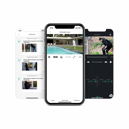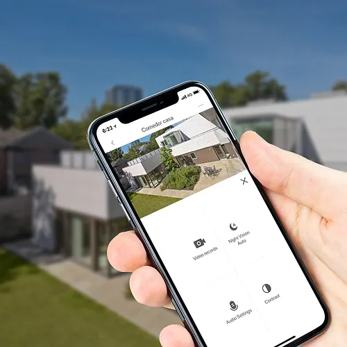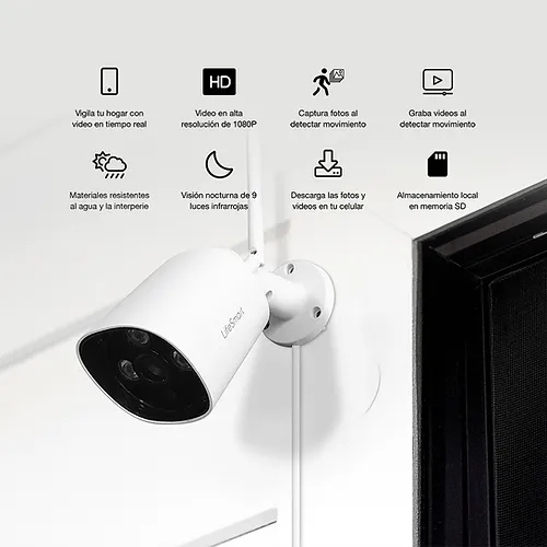 Monitorea el exterior de tu propiedad en tiempo real, recibe instantáneas cuando hay algún movimiento inusual, configura condicionales para reforzar tu sistema de seguridad, accede y descarga desde tu celular los vídeos grabados en el almacenamiento local. La cámara para exteriores está fabricada en un material metálico resistente a la corrosión y tecnología para su adecuado funcionamiento en la intemperie, resistente al polvo y chorros de agua.