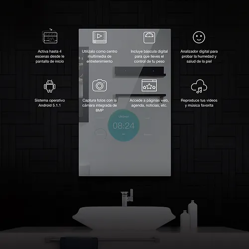 El Espejo Inteligente de LifeSmart más que un espejo común, es un dispositivo inteligente que te permite controlar tu casa inteligente y hará tu vida más fácil. Ubícalo en la entrada, baño o dormitorio, configura tus preferencias personales y empieza a disfrutar de una vida más inteligente, gestión de la salud, cámara integrada, control de voz, funciones de entretenimiento, etc.
