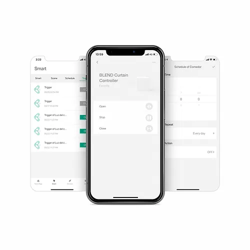 El motor para cortinas enrollables de LifeSmart te permite controlar las cortinas con el mando a distancia incluido, desde tu celular a través de la aplicación LifeSmart, por comandos de voz, programar temporizadores o incluso automatizar su funcionamiento con sensores.